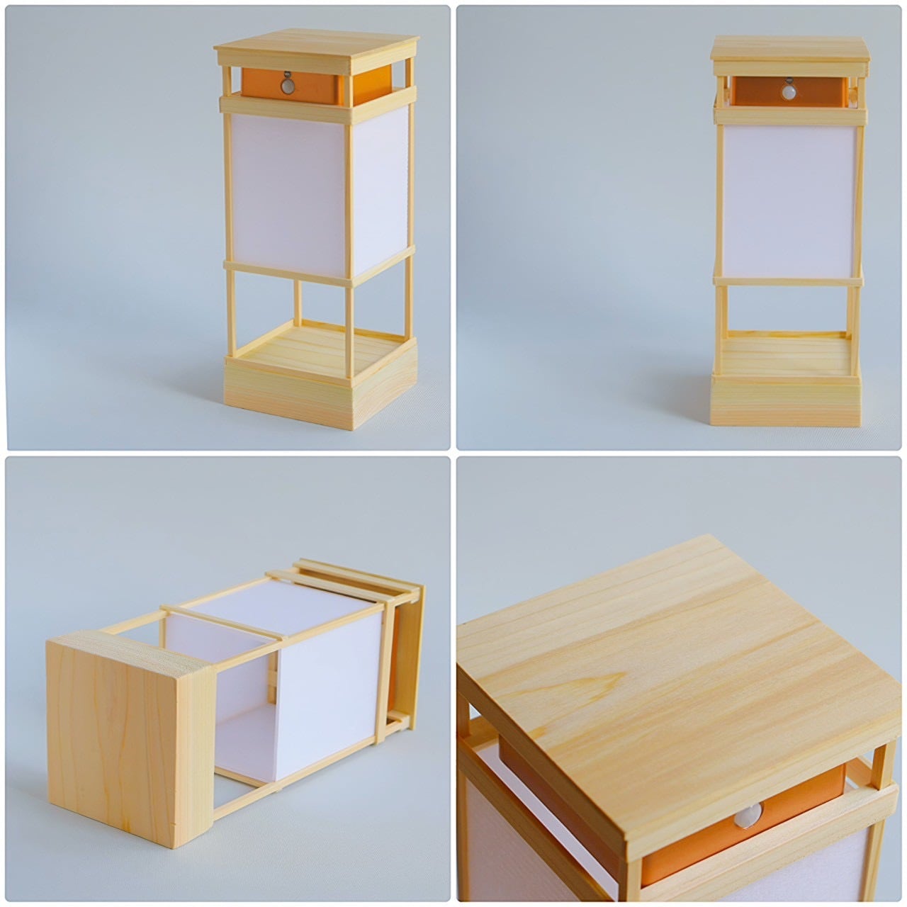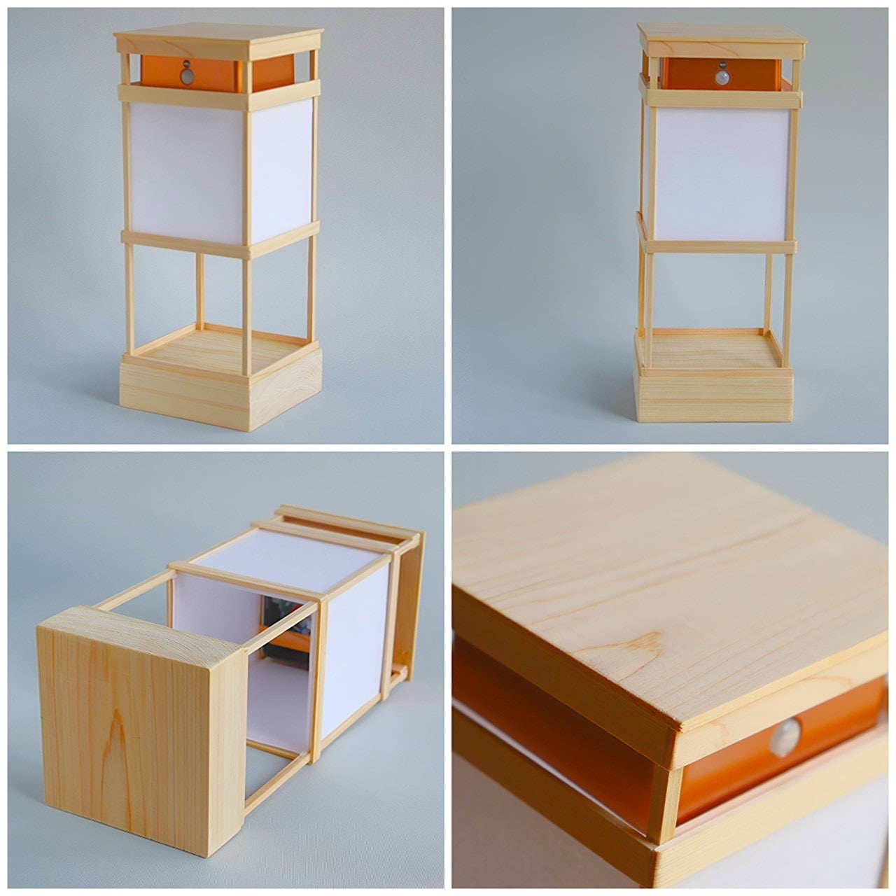 そして令和の行灯を、当店では「灯り箱あかりばこ」と名付け、懐かしさを新しく体験をコンセプトに、未来に(行く灯り)行灯を届けるため作家活動をしています。