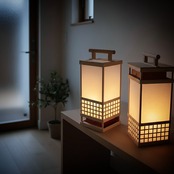 江戸の民家を照らした炎。風情ある下町に流れた静かな時間を手作りにてご用意いたしました。綺麗に配列された木材が影をつくり美しく灯影されます。