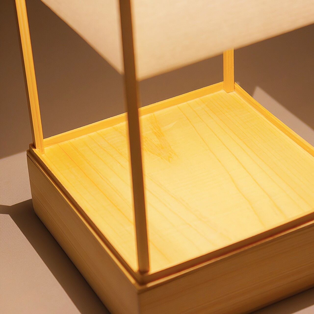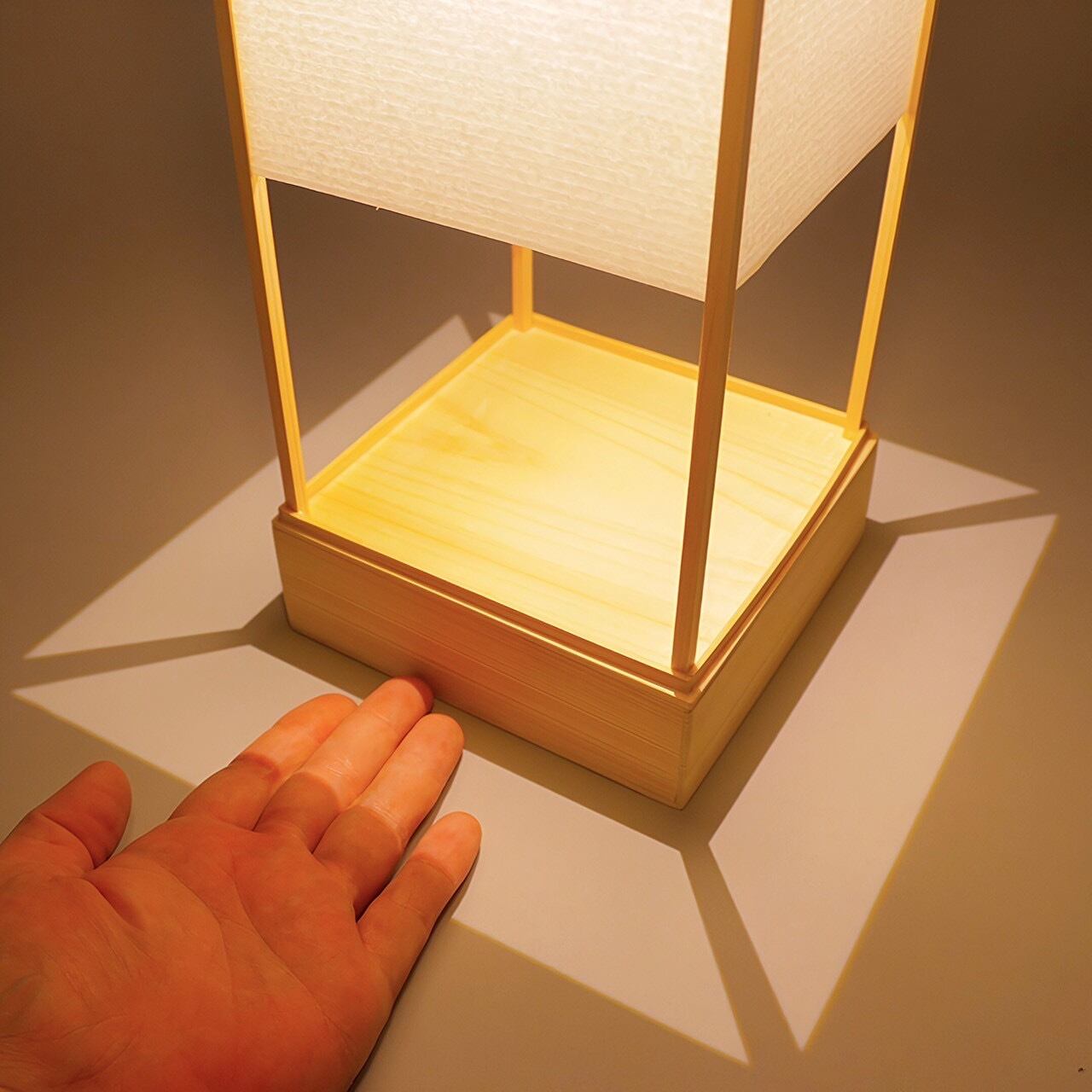 プラ板に和紙をはり、天然木には桧。