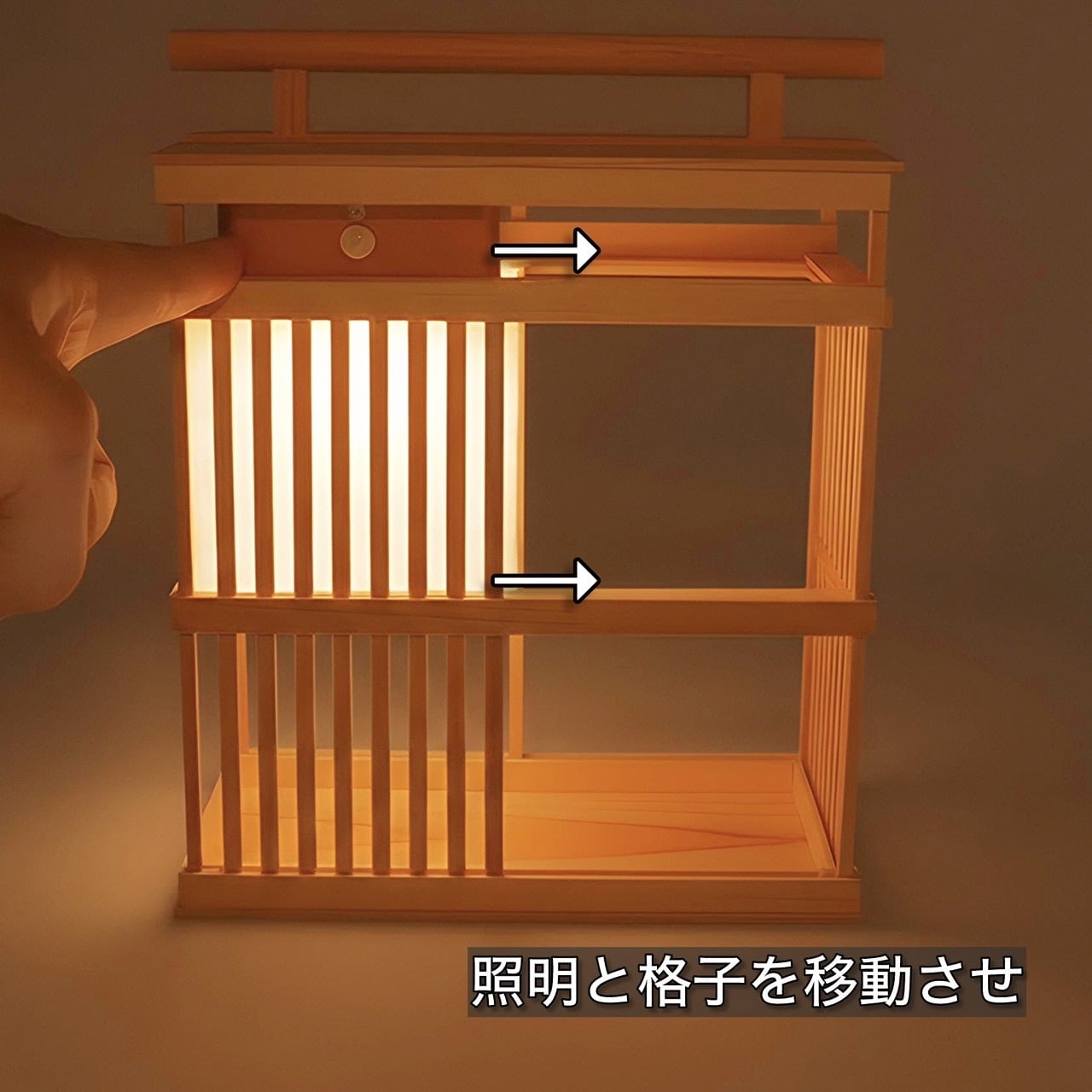 今回、照明と格子動く構造にすることに苦労しました。引き戸の持つ場所を上すぎたり下すぎると動きが悪くなります。