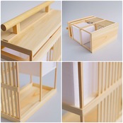 ・プラ板に障子紙を貼り、桧ひのきで組み上げ
