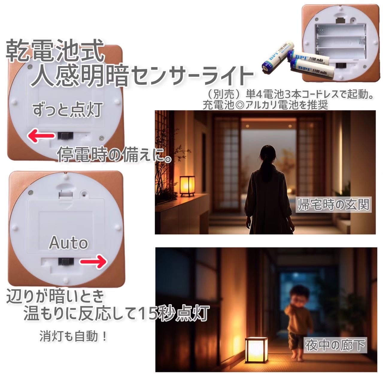 乾電池式の人感センサーライトは